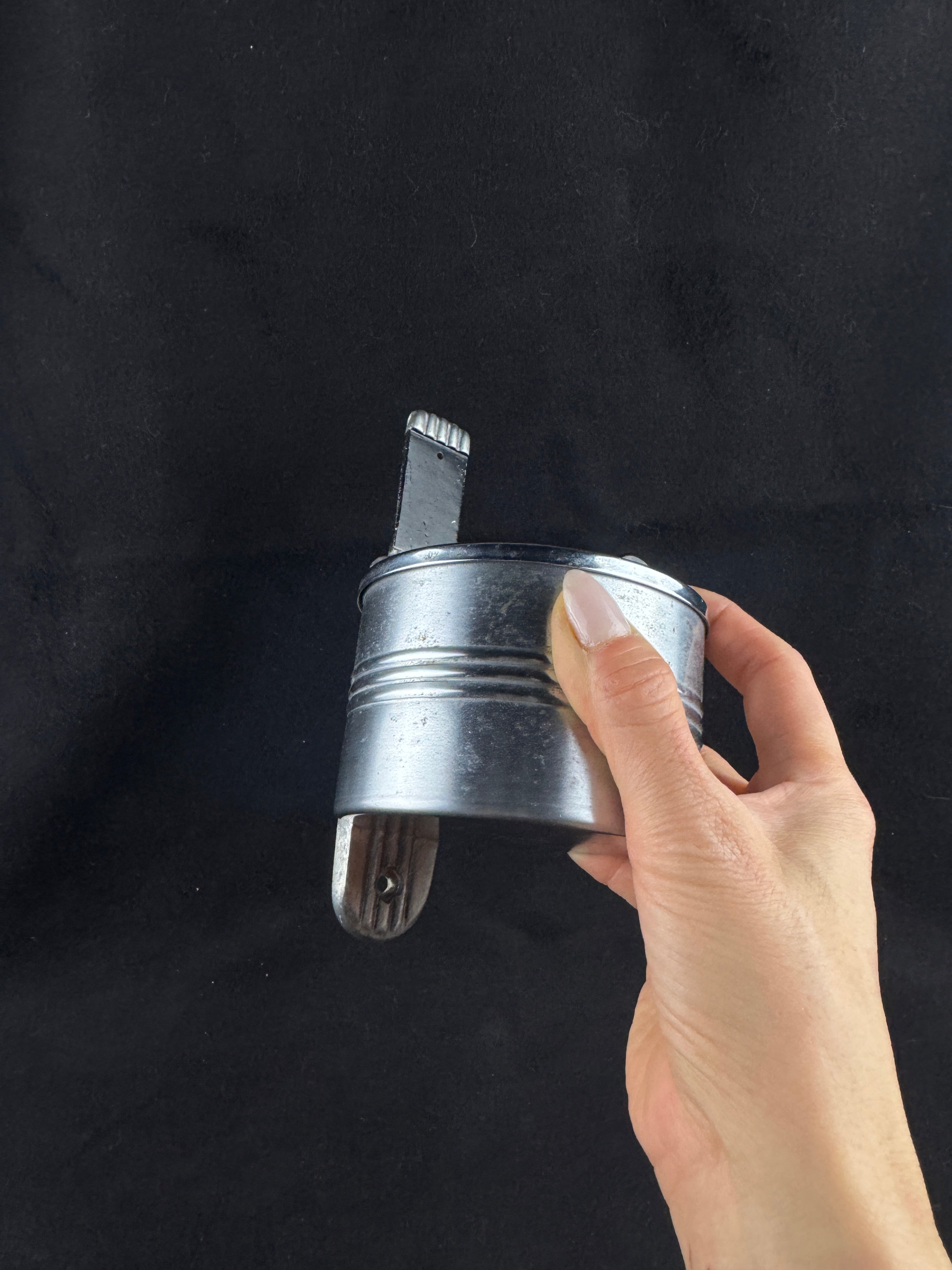 Mountable ashtray with sliding lid, perfect for (outdoor) smoking areas in your home or office. Very unique, very solid (lived through much wear and tear already)